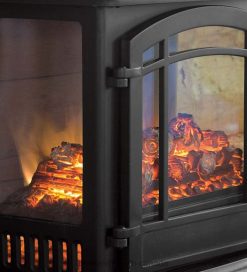 Our attractive stove heater has three clear sides so you can enjoy the realistic electric flames from every angle. Both useful and beautiful, this engaging design features a 4,600 BTU quartz infrared heater with thermostat control. This super-efficient technology warms you instantly and directly. Rather than warming just the air, our quartz infrared stove actually warms you with the infrared waves.