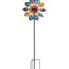 Mount this painted metal spinner anywhere in your landscape: garden, front or back yard, flower bed, along a pathway or at the end of the driveway as a landmark. The bright colors will make any garden feel like it’s in bloom all year long. The black post has a three-prong stake for secure installation.