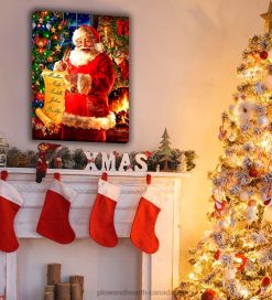 - Illuminated Santa’s List artwork mounted on wood frame with canvas finishing on all sides