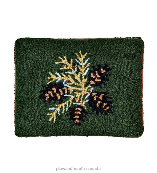 Plow & Hearth Pine Cone Hand-Hooked Wool Footstool Furniture 680X02096