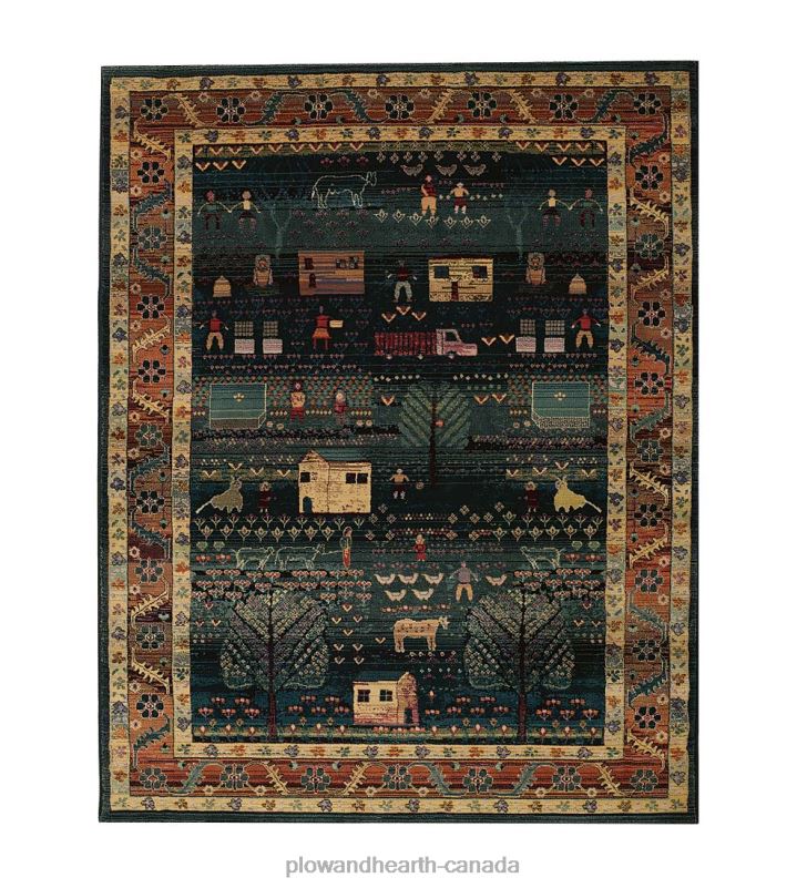 Our Shaker Village Rug depicts a busy farming community working the fields, tending the animals and harvesting crops. The design is beautifully woven into this eye-catching, affordable Shaker Village Rug.Durable heat-set 100% polypropylene stands up to heavy traffic, is stain resistant and easy to clean. Blue is imported; Red is made in USA.Pattern varies slightly by size. Sizes are approximate. Rug does not have fringe.