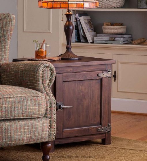 Our Portland Ice Box Side Table features paneled sides with solid pine and pine veneer construction and a rich walnut finish. The timeless design is at home in any room – use it as an end table, side table or nightstand. Back is unfinished. Assembly required; hardware included.