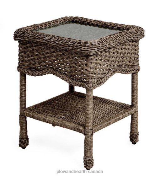 Our Prospect Hill Wicker End Table is both attractive and durable. Beautifully woven, polyurethane wicker is wrapped around sturdy aluminum frames for a look that’s elegant, weather-resistant and made to last. Our Prospect Hill Wicker End Table has a bottom shelf for storage or display, and an inset tempered-glass tabletop.Handsome striations give this luxury wicker a textured, natural look. All pieces feature beautifully braided trim, and a finished design that looks beautiful from the front, back and every angle. Some assembly required. Imported.