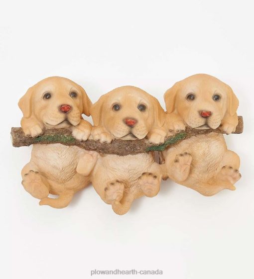 How do puppies always find such sweet trouble We may never know, but we can capture their clumsy exploration and endless enthusiasm for adventure with this precious sculpture of three golden retriever pups hanging from a tree branch. Featuring details like textured fur, over-sized puppy paws and their life-like expressions, this wall art captures the heart and elicits an aw from every dog lover and child who spots it.