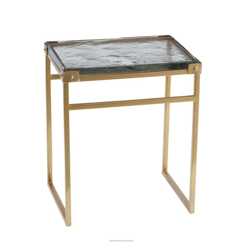The accent table features a cast glass top with a gold finished metal base with rivet accents at each corner. The sophisticated design is perfect for adding a luxe look to your home.