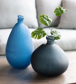 Plow & Hearth Recycled Round Frosted Gray Glass Balloon Vase – Gray Houseware 680X02473
