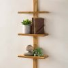 Display your favorite books, plants, and trinkets on this set of three circle shelves for an interesting geometric wall arrangement. Made from wood and metal, these shelves are sturdy and will work in a modern space.