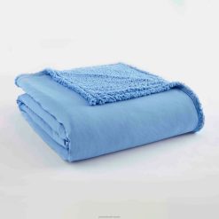 Plow & Hearth Reversible Solid Micro Flannel Sherpa Blanket – Blue – Twin Houseware 680X02690