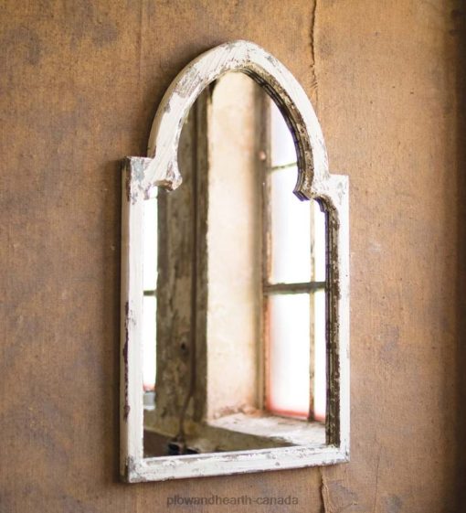 Plow & Hearth Rustic White Wood Arched Framed Mirror with Gold Accent Houseware 680X02534