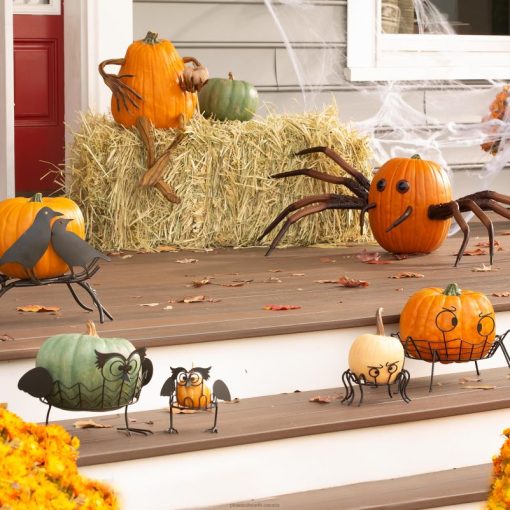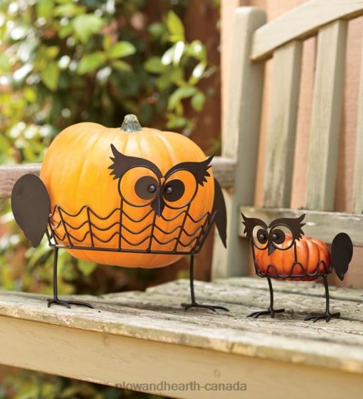 Plow & Hearth Set Of 2 Owl Pumpkin Holders Houseware 680X01497