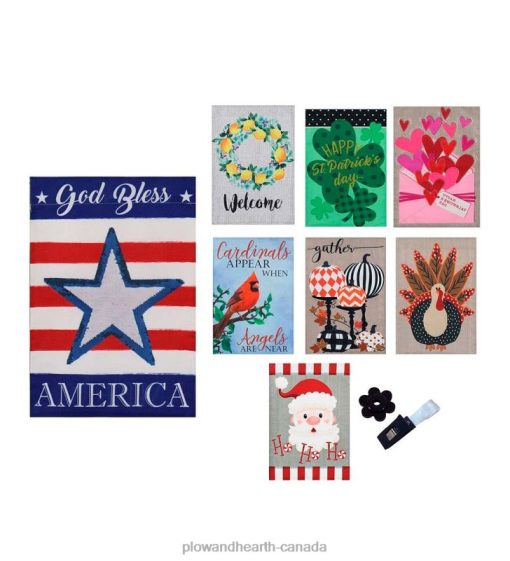 - Garden flag set Includes 8 seasonal flags and a flag clip