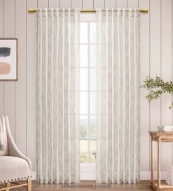 Our Sheer Leaf Curtains dress your home in effortlessly beautiful design and custom-like details. Luxurious woven curtain with embroidered leaf design delivers instant drama and appeal to any space.