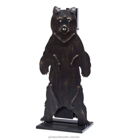 Laser-cut stand is fashioned in the shape of a bear with the poker, shovel and broom hanging behind. Wrought iron tools are built to last, and the design makes a wonderful conversation piece. The bear is black with light bronze highlights; tools are solid black.