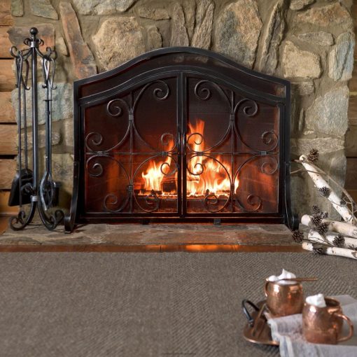 Ornamental scrollwork in solid wrought iron sets our exclusive Crest Fireplace Screen With Doors apart.