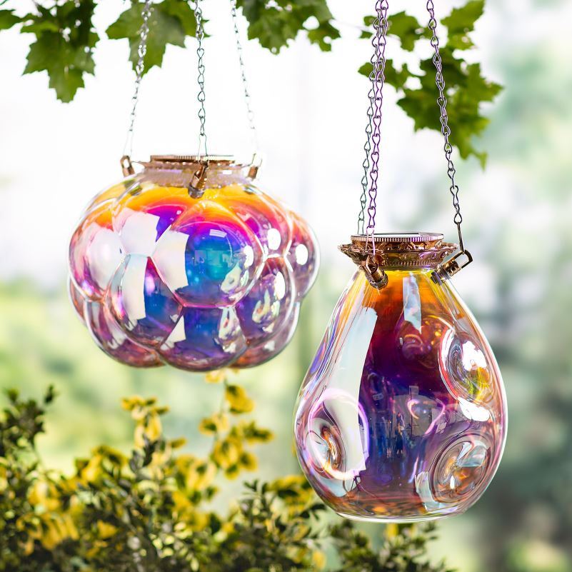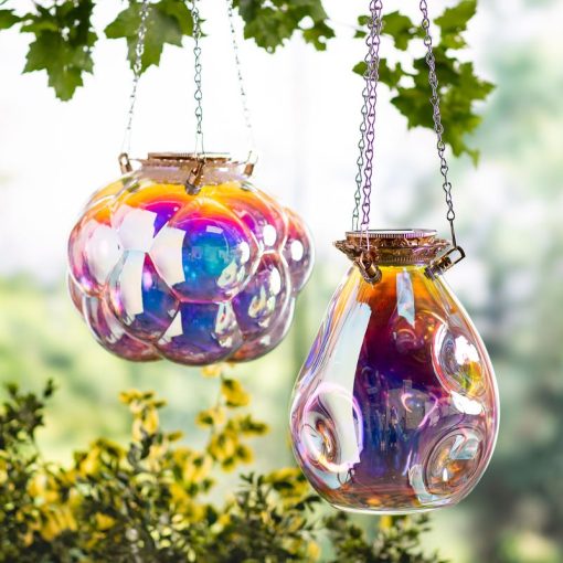 These unique Iridescent Glass Lights show luminous colors that seem to change when viewed from different angles.