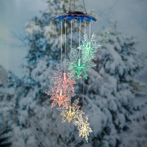 Watch our color-changing Solar Snowflakes Mobile add festive color to your winter landscape. The snowflake mobile’s beautiful, colored top features a built-in solar panel. Each snowflake contains an LED light the comes on at dusk and changes from red to green to blue for 6 to 8 hours of light at night. Gorgeous snowflakes hang at various lengths to add a whimsical look to this mobile. A perfect gift for anyone who loves winter. Takes 1 rechargeable AA battery, included.