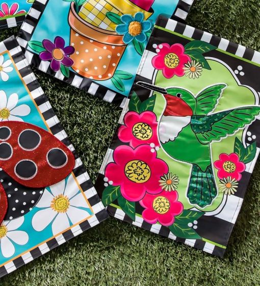 Plow & Hearth Spring Hummingbird Applique Garden Flag Yard & Garden 680X0599