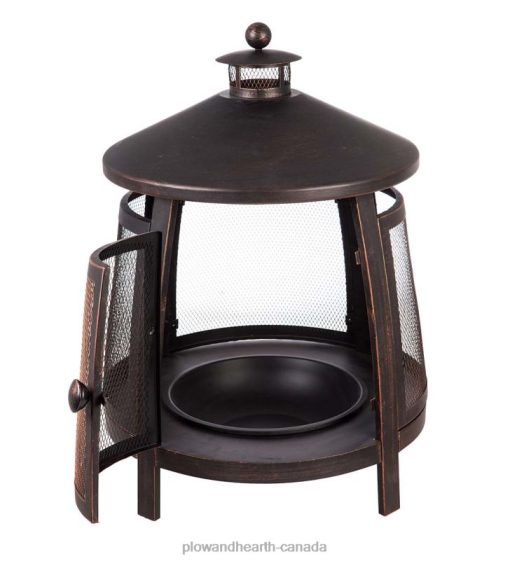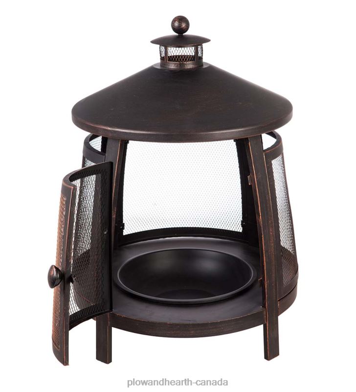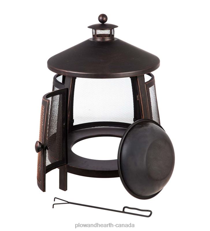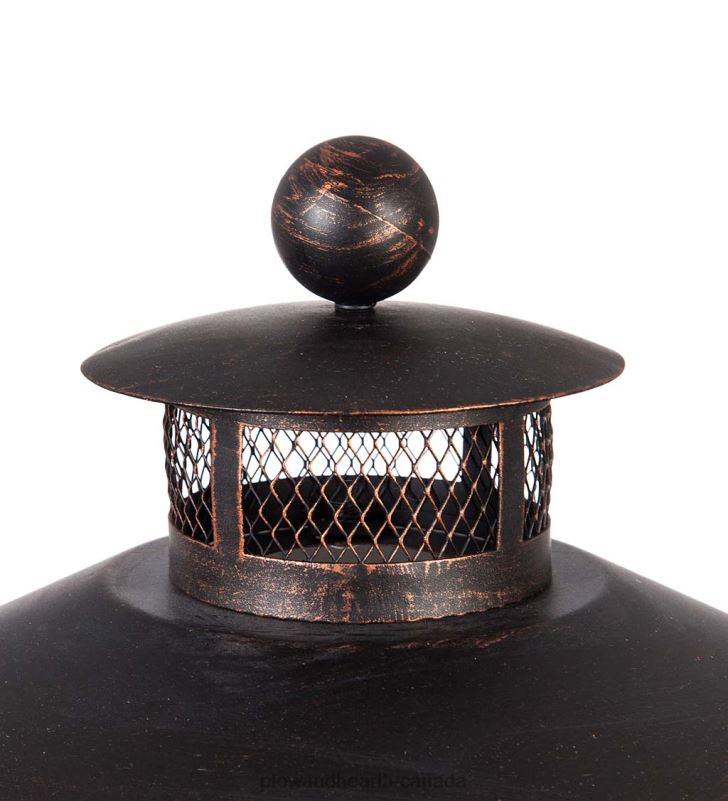 The high dome and chimney channels the smoke up and away while allowing the air to circulate within the fire pit – making more heat and less smoke. With a stunning weather-treated bronze finish, the durable iron construction comes with a removable fire pan that makes clean up simple!