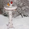 - Features a crosshatched base, two lily pad basins and two sculpted birds perching on the edges