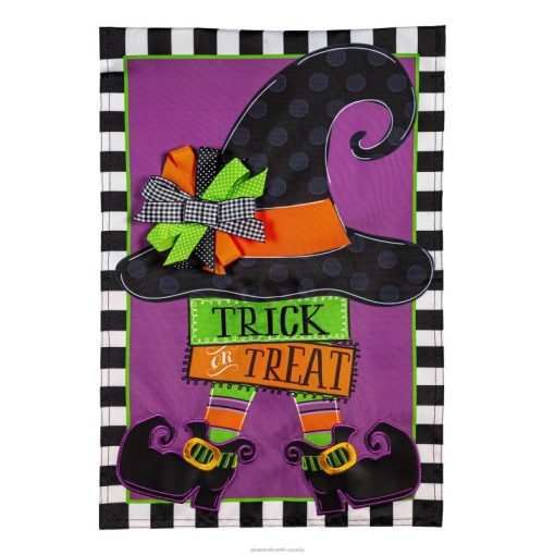 Greet guests in frightful style with this Trick Or Treat Witch Applique Garden Flag. With incredible detail and texture, display this garden flag anywhere for a haunting look!