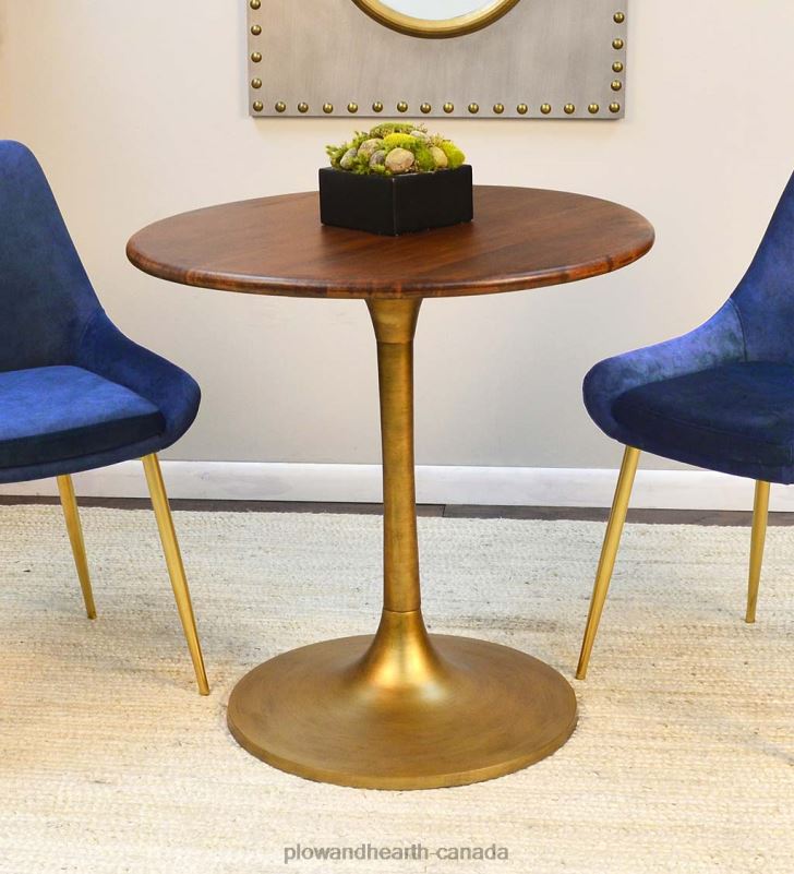 Crafted from sustainable mango wood with an aluminum pedestal base, this classic table’s design and unique materials makes it a timeless favorite that blends beautifully with your home’s existing style. The tabletop is finished with a deep, rich elm stain.
