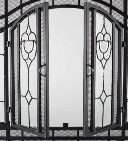 The screen keeps sparks from leaving your fireplace, making it both safe and beautiful as the glass portions reflect the dancing flames. This screen works with both real wood fires and gas logs.