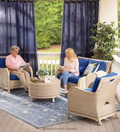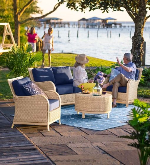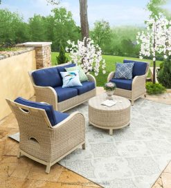 Plow & Hearth Urbanna Driftwood Premium Wicker Four Piece Set with Cushions – Midnight Navy Houseware 680X01158