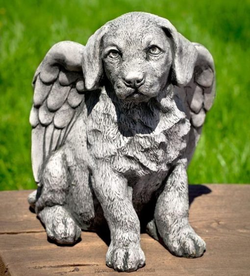 Plow & Hearth USA-Made Cast Stone Angel Puppy Garden Statue Yard & Garden 680X0180