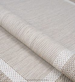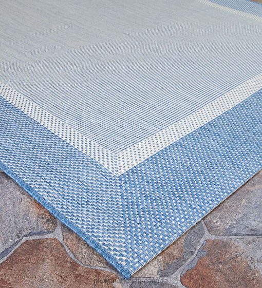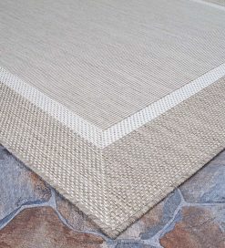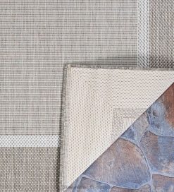 This all-weather, pet-friendly area rug is power-loomed of 100% fiber-enhanced Courtron polypropylene, UV-stabilized, and mold, mildew and stain resistant. Flatwoven construction produces a low 1/8 pile that clears most inside and outside doors.