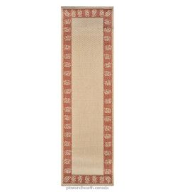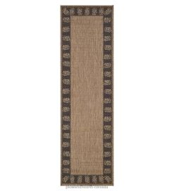 Power-loomed of 100% fiber-enhanced Courtron polypropylene, this all-weather, pet-friendly area rug is mold, mildew and stain resistant. Flatwoven construction produces a low 1/8 pile making it suitable for indoor and outdoor use.