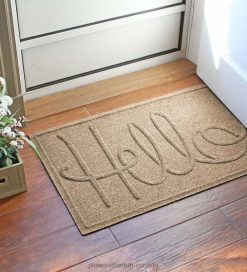 Plow & Hearth Waterhog Indoor/Outdoor Hello Doormat, 2′ x 3′ – Blue Yard & Garden 680X01041