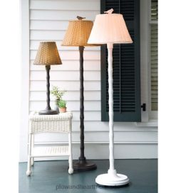 Light up your outdoor living areas with our completely waterproof Outdoor Wicker Lamp that stands up to the elements. Place it on a porch, deck, patio or gazebo and enjoy easy outdoor lighting without worry.The outdoor-grade plug, cord and elements make it safe to use anywhere, while the resin wicker shade, bamboo-inspired column and bird finial (on floor lamp only) lend a decorative touch. The substantial base is weighted for stability. 10′ cord makes it easy to place anywhere. 60W bulb included.