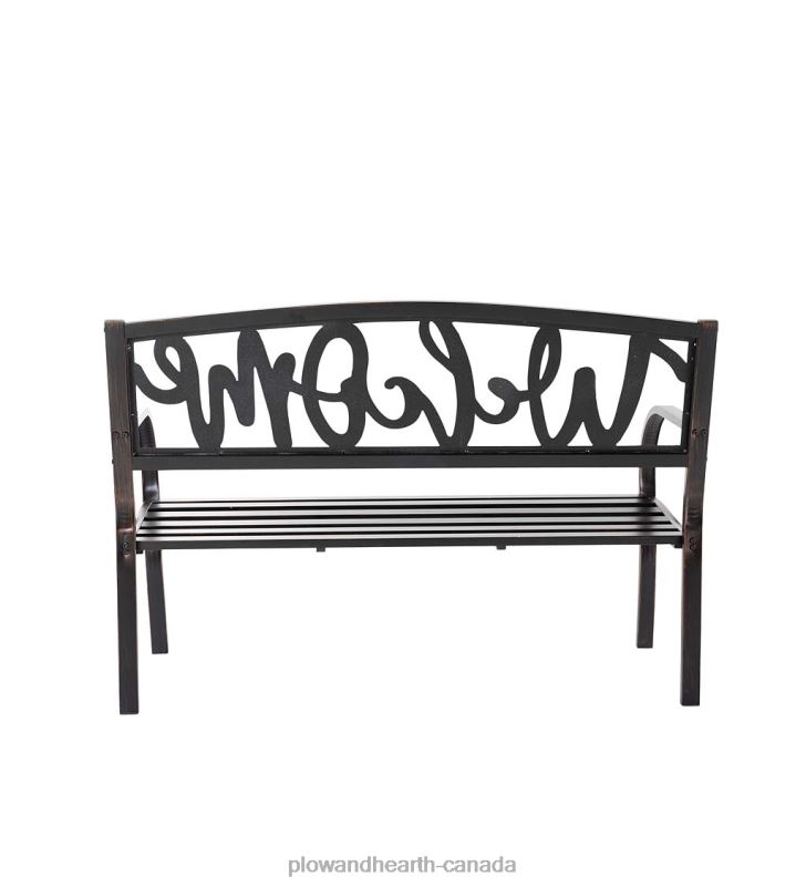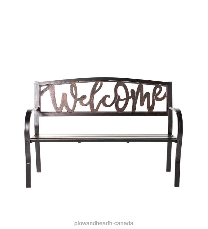 This decorative garden bench features a charming back design with welcome script. The classic brushed dark copper finish lends a timeless look to any setting. It’s compact, yet comfy: full-size 4’L bench offers seating for two.