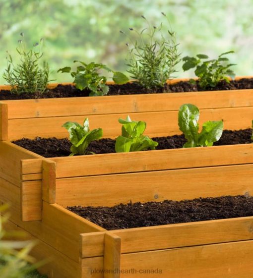 Plow & Hearth Wooden Three-Tier Self-Contained Raised Bed Garden Planter Yard & Garden 680X0927