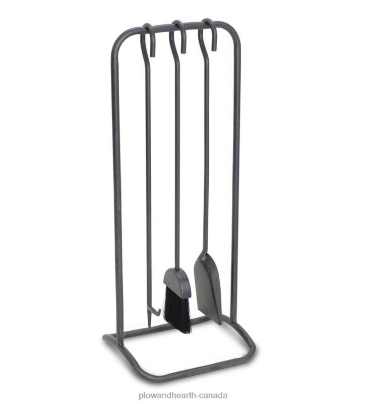 The Woodland fireplace tool set includes three tools that hang in a row on a sturdy stand with arched base. Finished in natural iron with hook handles, the 30 tall set includes a shovel, brush and poker. Black bristle brush adds an elegant touch. Coordinates our Woodland Fireplace Screen (#13970).